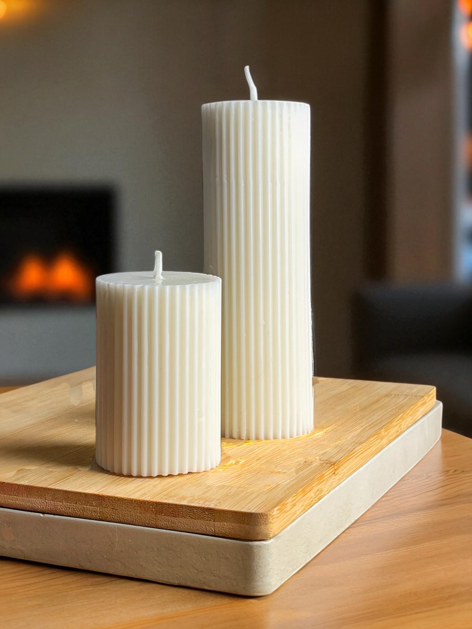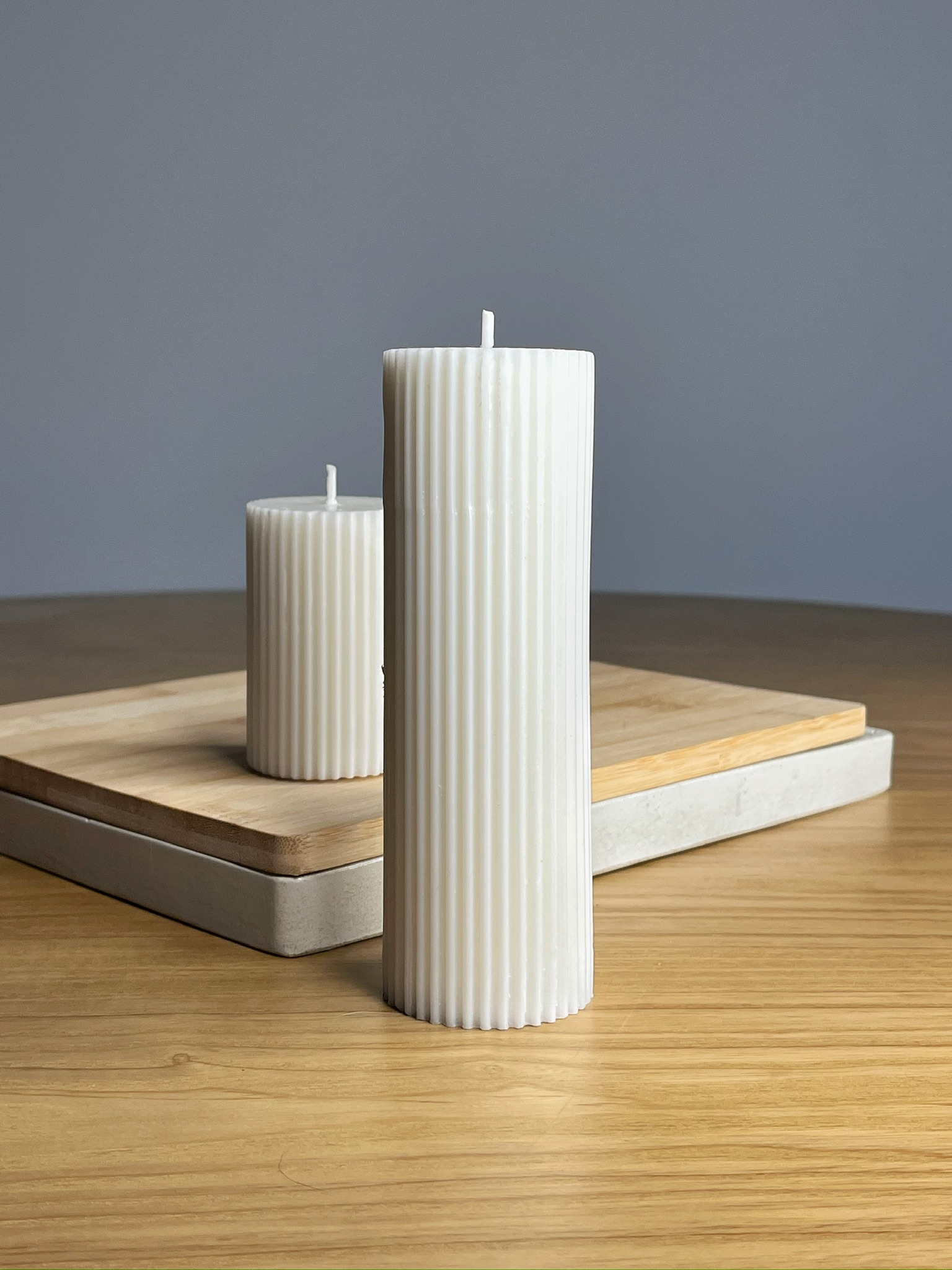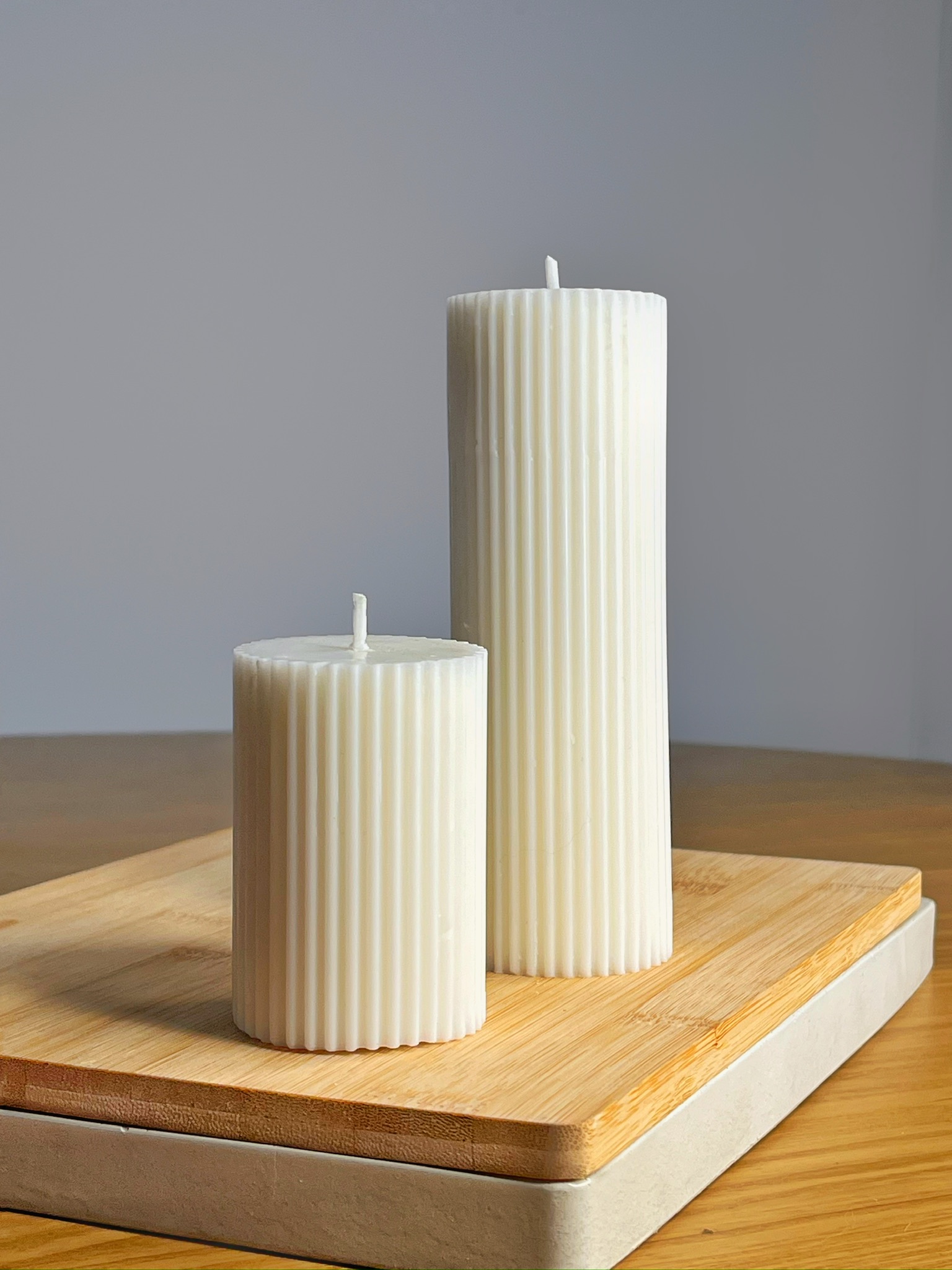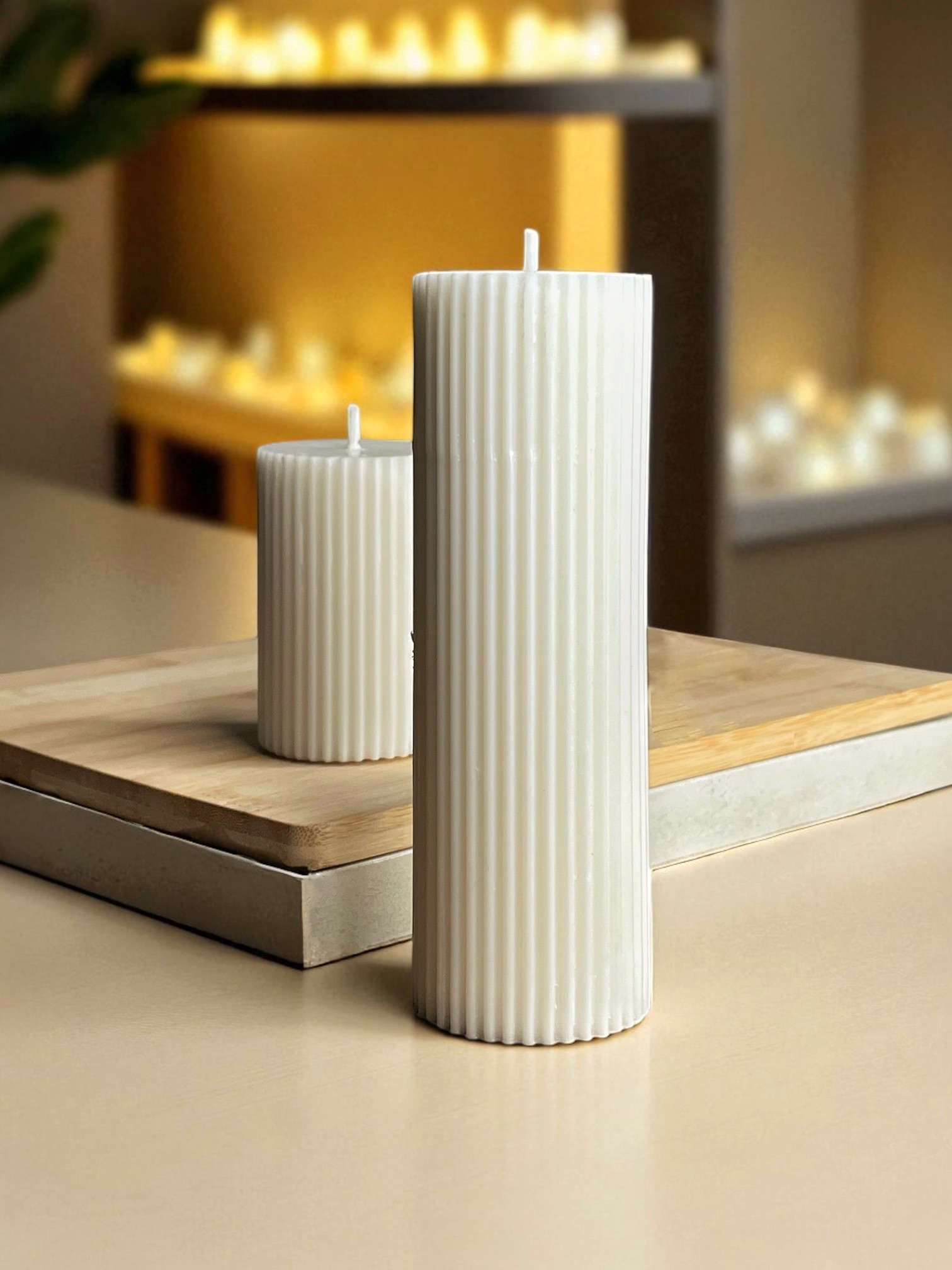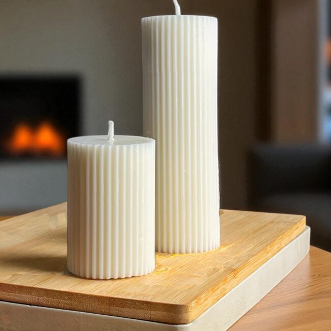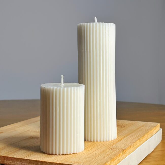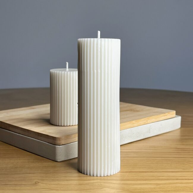 Elegante dúo elaborado en cera vegetal, sin aroma y de uso preferiblemente decorativo. Perfectas para dar un toque minimalista y sofisticado a tus espacios.
